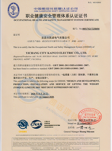 職業(yè)健康安全管理體系認(rèn)證證書